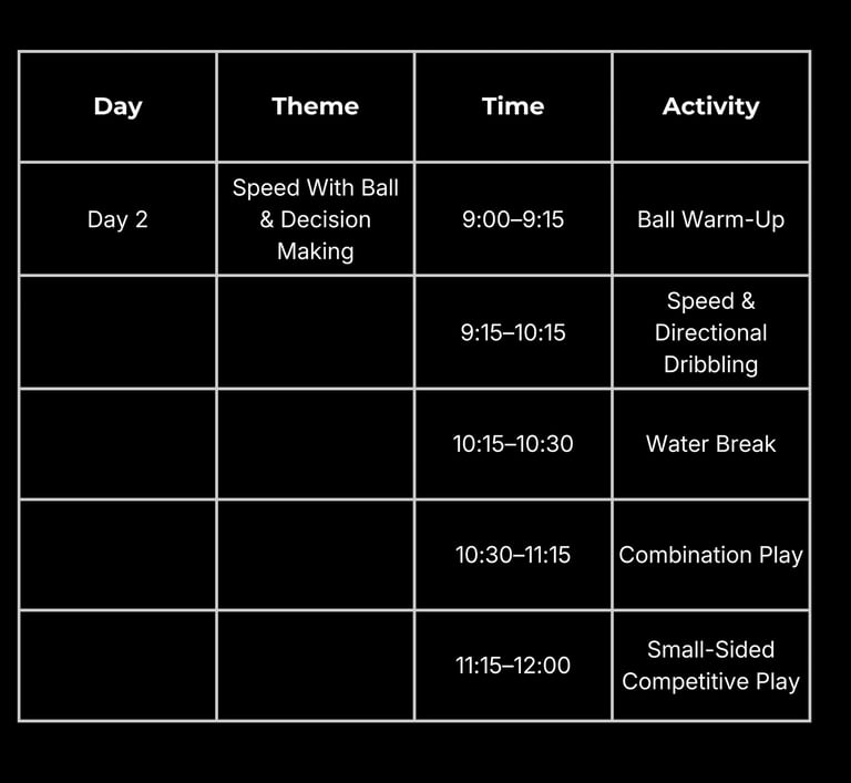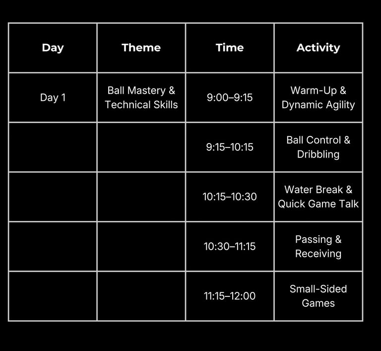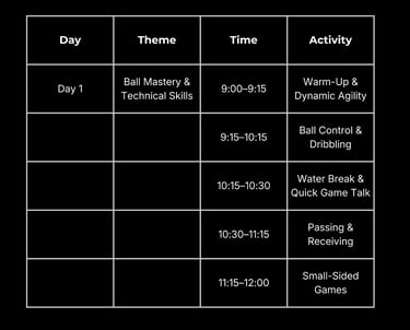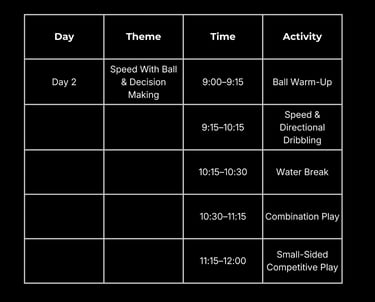 High-intensity, Adidas-powered training led by OV Toros FC for motivated players. These camps focus on technical development, decision-making, and competitive confidence in a fast-paced, game-realistic environment.